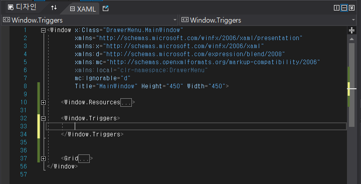 <Window.Resources></Window.Resources> 아래에 <Window.Triggers></Window.Triggers>를 추가합니다.