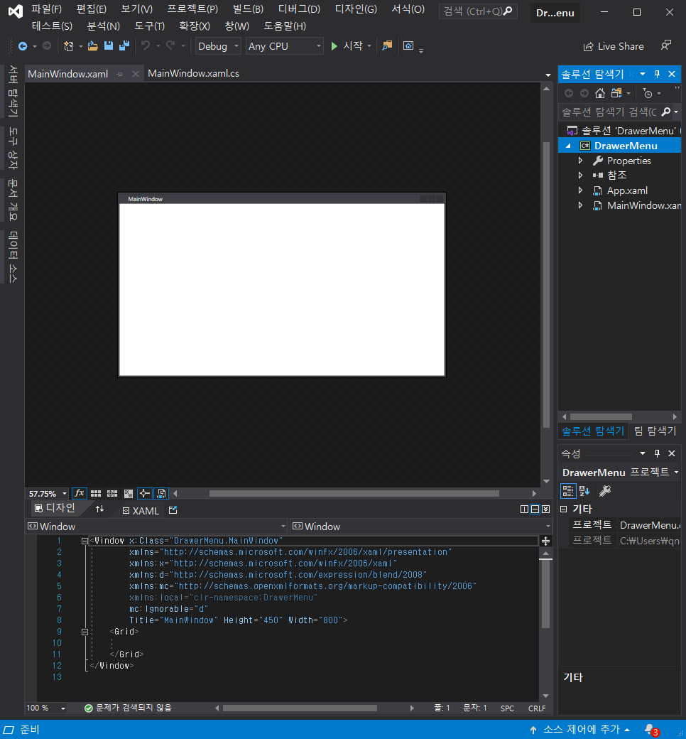 만약 HorizontalAlignment를 Left 정렬하지 않거나 Margin을 Width의 음수 값만큼 주지 않는다면 서랍 메뉴를 열지 않았을 때에도 보이게 됩니다.