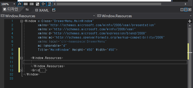 닫은 <Grid> 위에 <Window.Resources></Window.Resources>를 추가합니다.