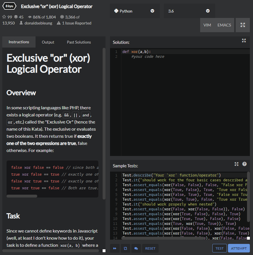 이 문제는 ^ 연산자뿐만 아니라!= 나 is not을 사용해서도 문제를 풀 수 있습니다.