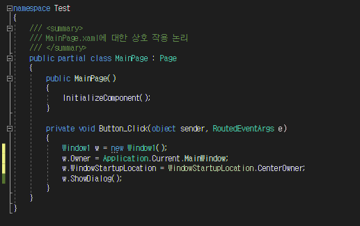 Page에서 새로운 Window 창을 사용할 때, WindowStartupLocation을 통해서 시작 위치를 설정할 수 있습니다.