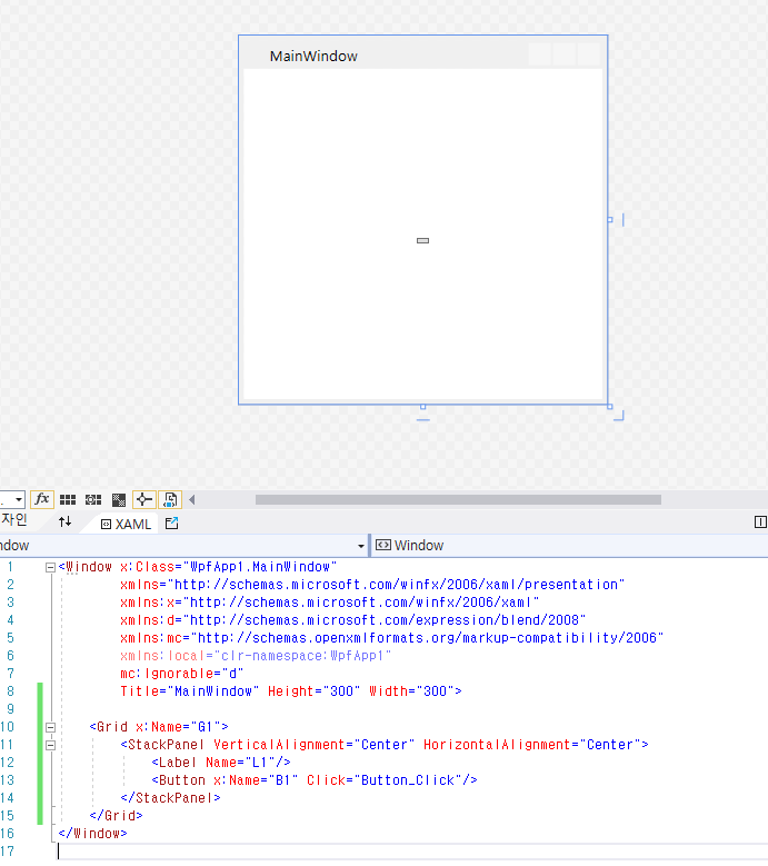 Grid 안에 Label과 Button을 한 개씩 준비합니다.