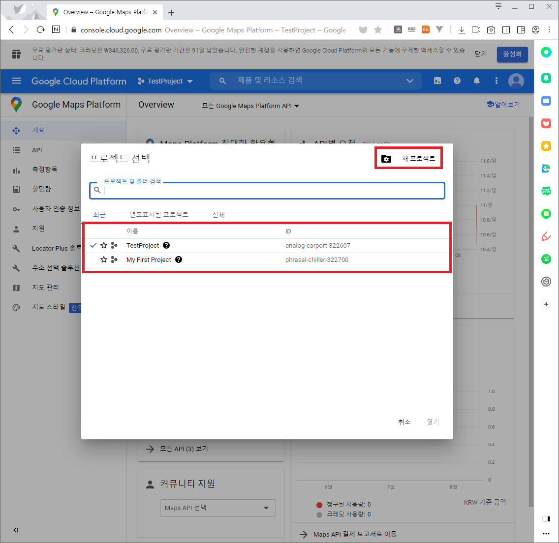 3) 새로운 프로젝트를 생성하거나 가지고 있는 프로젝트를 클릭합니다.