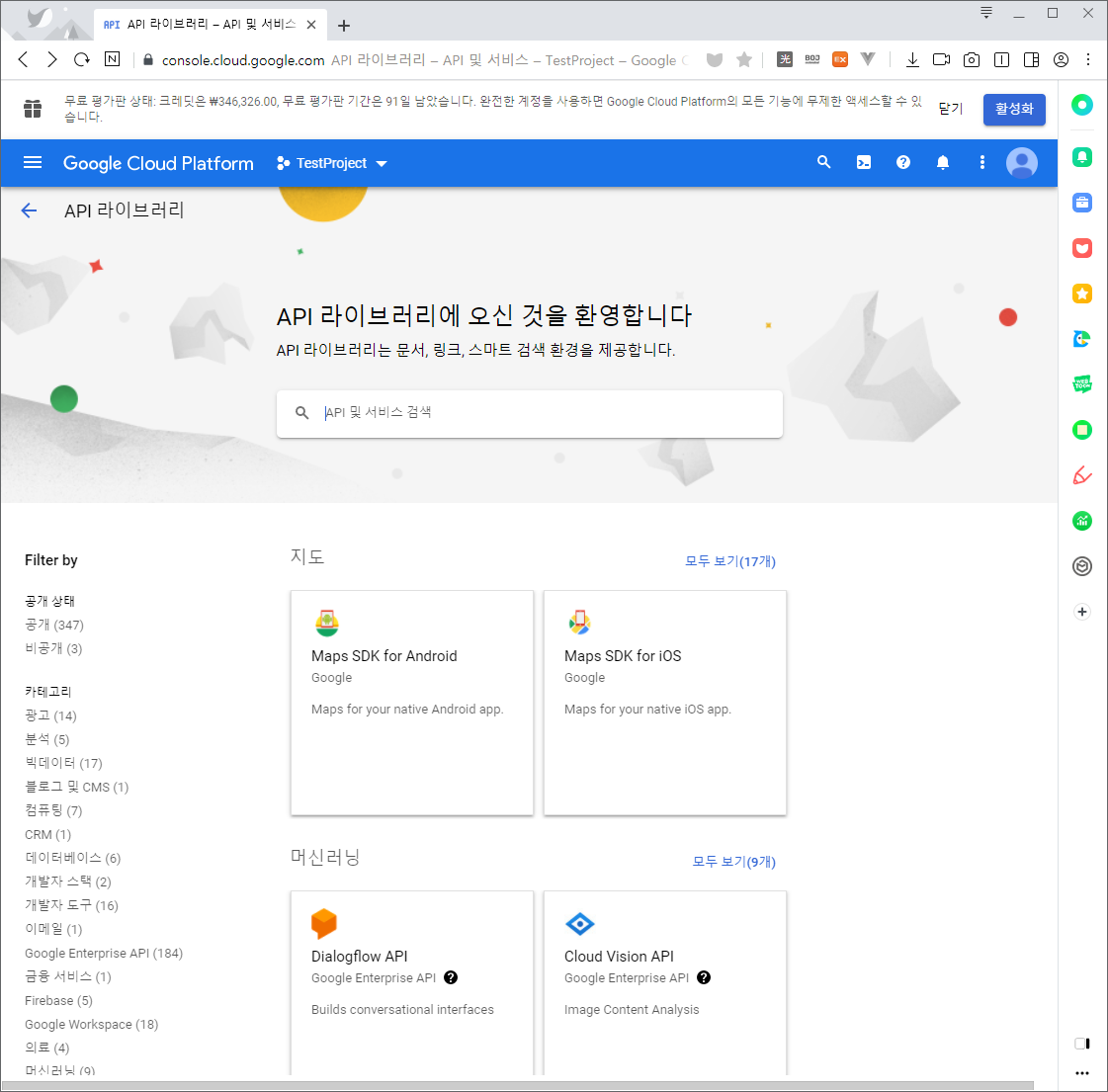 3. 구글 API 키 얻은 후 라이브러리 추가하기