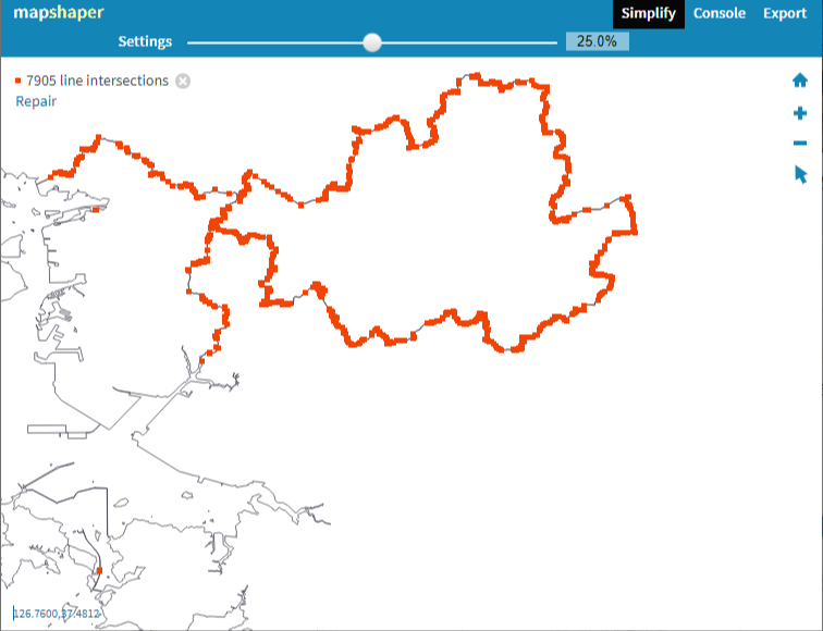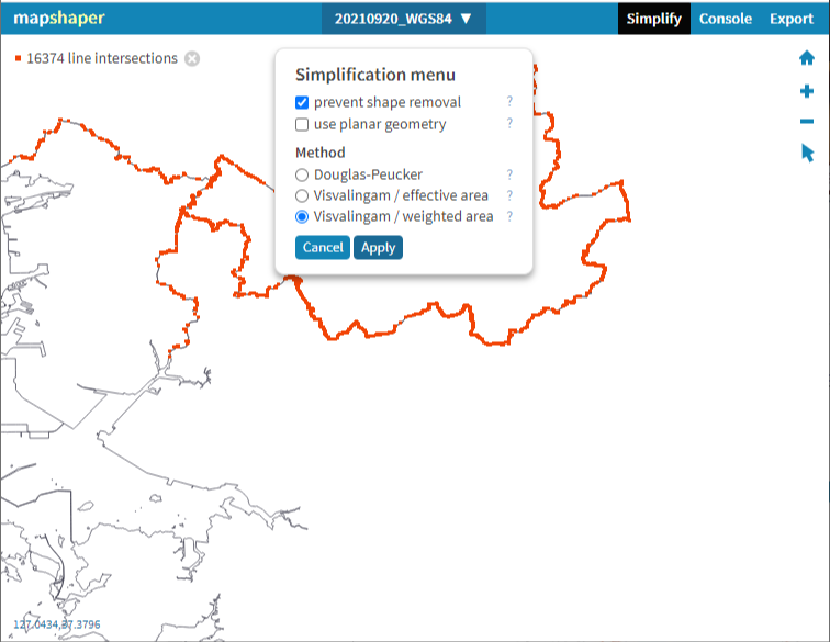 Simplify를 이용하여 지도를 단순화시켜줍니다. 단순화 작업이 필요 없을 경우 3-3으로 넘어가시면 됩니다.