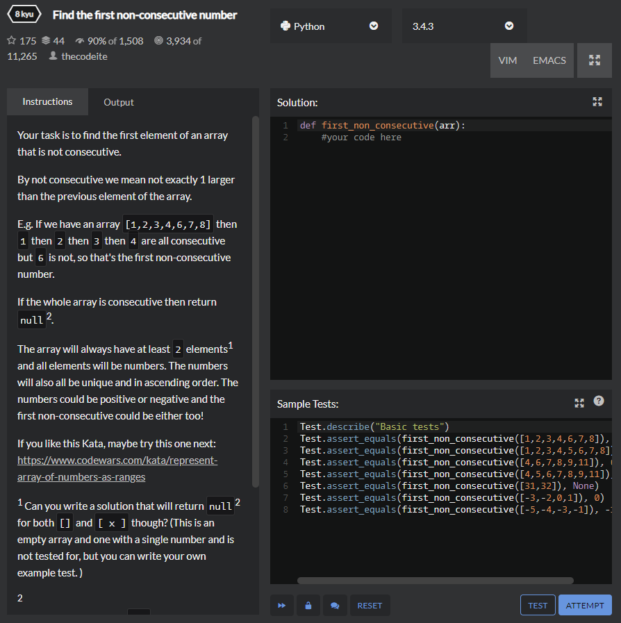 answer = first_non_consecutive([4, 5, 6, 7, 8, 9, 11]) # 11