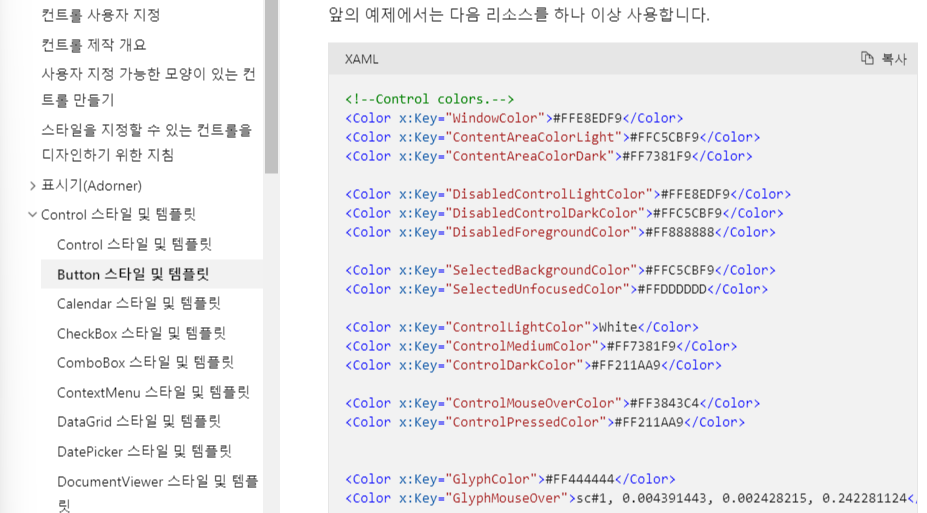 Control colors에 사용되는 Color에 대하여 간략하게 설명해보았습니다. Microsoft Control 스타일 및 템플릿에서 사용되는 전체 코드가 궁금하신 분들은 더보기를 눌러보시면 됩니다.