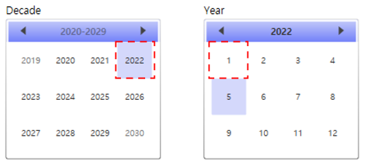 CalendarButton은 Calendar에서 월 또는 연도를 나타냅니다.