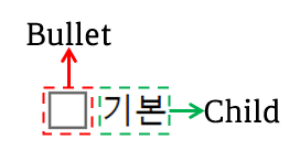 BulletDecorator는 두 개의 Content 속성 Bullet과 Child가 있습니다. Bullet은 글머리 기호로 사용할 개체 그리고 Child는 글머리 기호를 시각적으로 설정합니다.