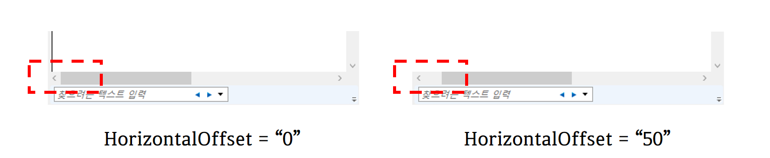 가로 스크롤 위치를 설정합니다. 초기 기본값은 0.0입니다.