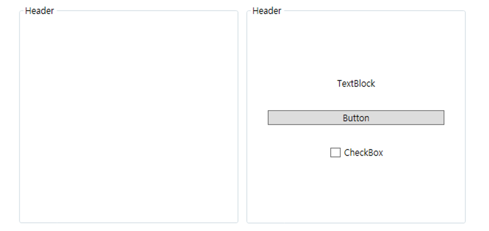 GroupBox Style은 Grid를 사용하여 행을 Header 부분과 Content 부분을 나누어서 구성했습니다.