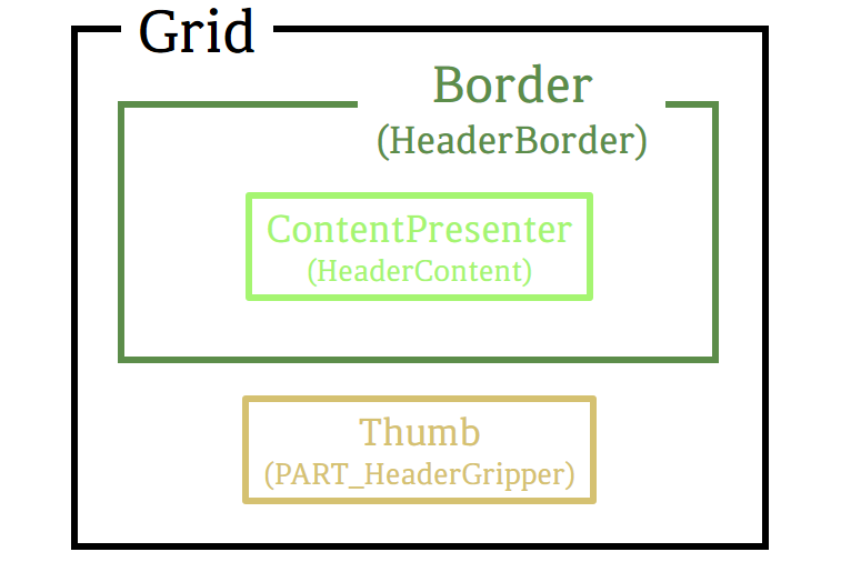 🌟 Margin과 SnapsToDevicePixels를 제외한 모든 속성들은 Binding을 사용하여 TemplatedParent.View.속성의 값들로 설정했습니다. 예제에서 사용된 ColumnHeaderContainerStyle의 경우 예제에서 정의한 GridViewColumnHeader가 사용되었습니다.