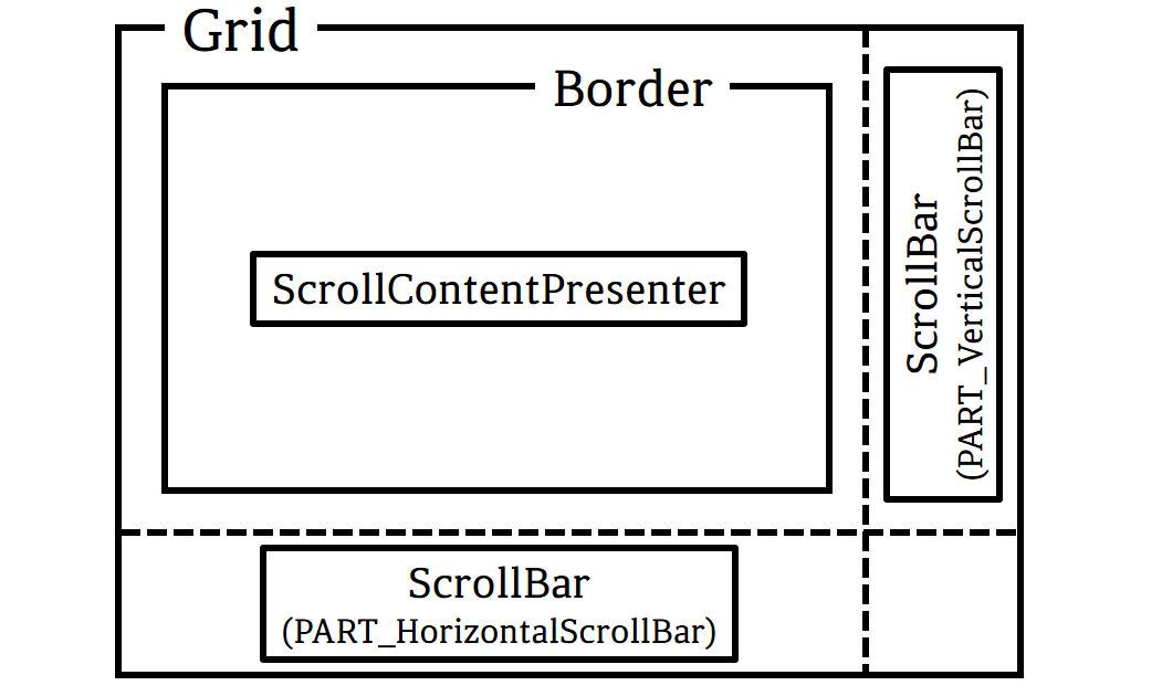 ScrollViewer은 Grid로 구역을 나누어서 ScrollContentPresenter와 ScrollBar를 구성하고 있습니다.