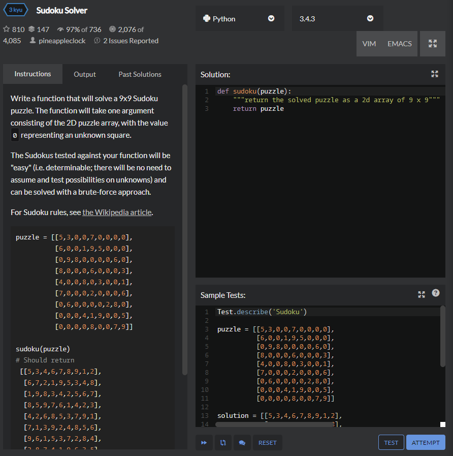puzzle = [[8, 0, 0, 0, 0, 0, 0, 0, 0],