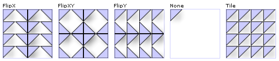 기본 타일이 출력 영역보다 작은 경우 사용자가 칠하고 있는 영역을 TileBrush에서 채우는 방법을 지정하는 값을 설정합니다. 값으로는 FlipX, FlipXY, FlipY, None과 Tile이 있습니다.