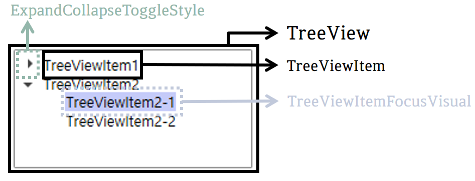 예제에서 사용된 ExpandCollapseToggleStyle은 TreeViewItem의 ToggleButton에 사용할 Style을 미리 정의해둔 것입니다.