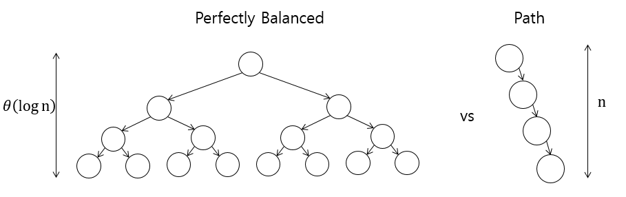 - 균형 이진 탐색 트리는 h = O(log n)로 유지됩니다.