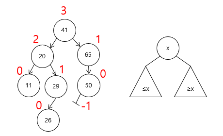⭐ 자식 노드가 없는 부모 노드는 자식 노드 부분 높이를 -1로 설정 - 각 노드는 자신의 높이를 저장((높이 대신 높이의 차를 저장할 수도 있음)