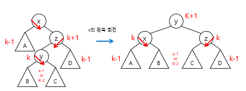 - if: x의 오른쪽 자식이 오른쪽-무거움이거나 균형이라면 아래의 그림 단계 수행