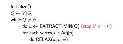 : s에서 t까지의 최단 경로만 필요하다면 Q에서 제거되었을 때 알고리즘을 멈춥니다. u=t일 때 종료합니다.
