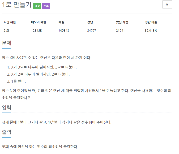 https://www.acmicpc.net/problem/1463
