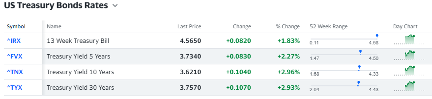 treasury = {'5년물': '^FVX', '10년물': '^TNX', '30년물': '^TYX'}