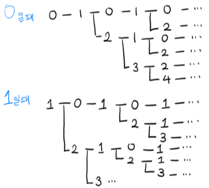 0과 9는 이전 단계의 1과 8단계의 값인 것을 알 수 있습니다.