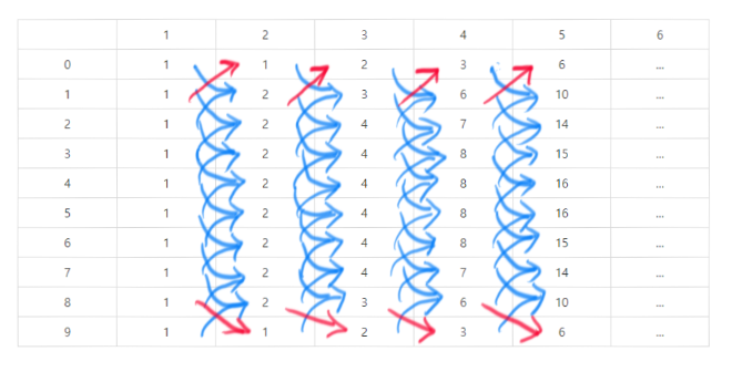 stair_nums[i][j] = stair_nums[i - 1][j + 1]