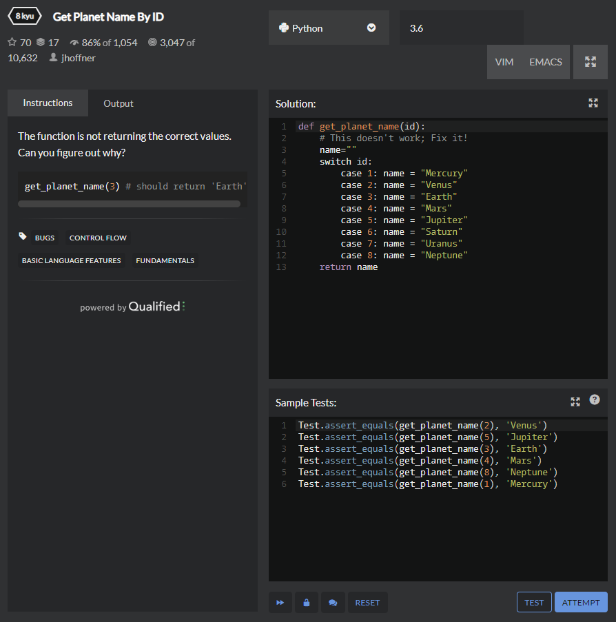 Codewars is where developers achieve code mastery through challenge. Train on kata in the dojo and reach your highest potential.