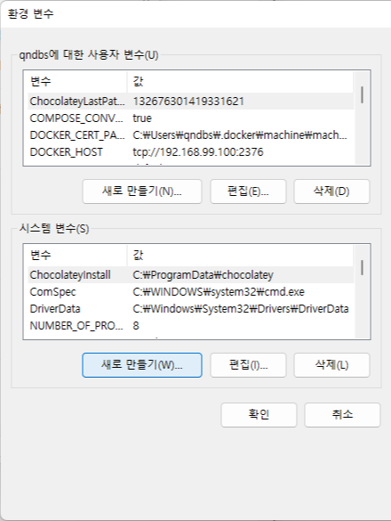 3. [환경변수] - [시스템변수] - [새로 만들기]를 클릭합니다.
