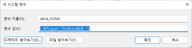 3-1) 변수 이름에 JAVA_HOME을 입력하고 JDK를 다운로드한 경로를 입력합니다.