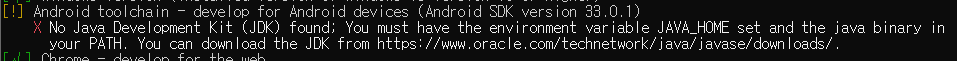 flutter 설치 후 flutter doctor에서 No Java Development Kit 오류가 발생할 때
