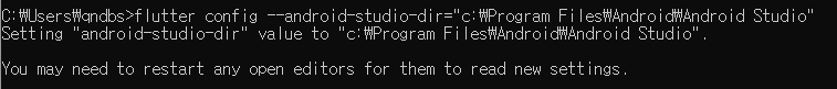 flutter config --android-studio-dir="c:\Program Files\Android\Android Studio"
