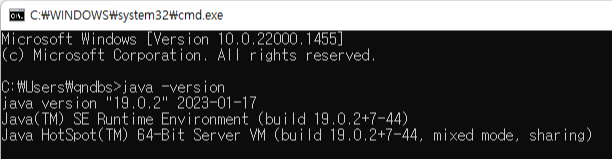 4. 환경변수가 설정이 잘 되었는지 cmd에서 java -version 명령어로 확인합니다.