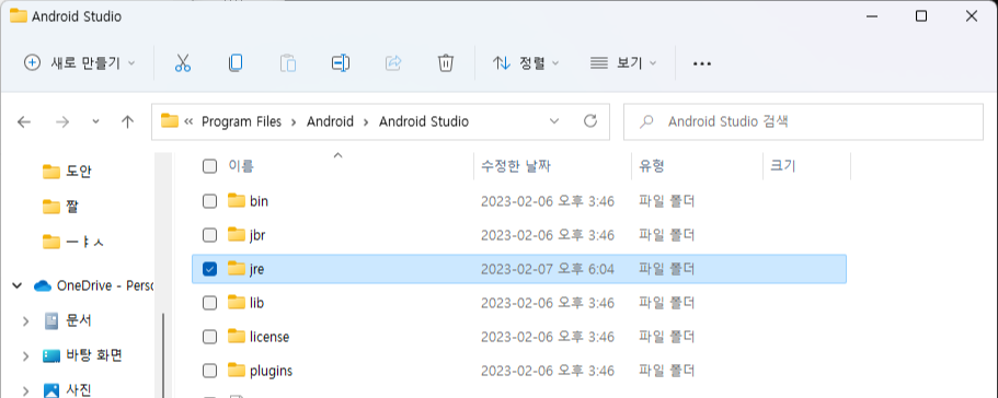✔️ Android Studio가 설치된 디렉터리에서 jbr에 있는 파일들을 복사해서 jre에 덮어씌워줍니다.