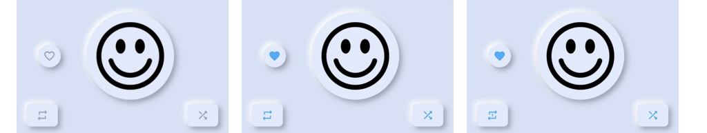 모두 버튼 형식으로 제작하였으며 앨범 커버를 제외한 버튼들은 누르면 상태가 변하게 되고 앨범 커버를 누르면 음원 페이지로 이동합니다.
