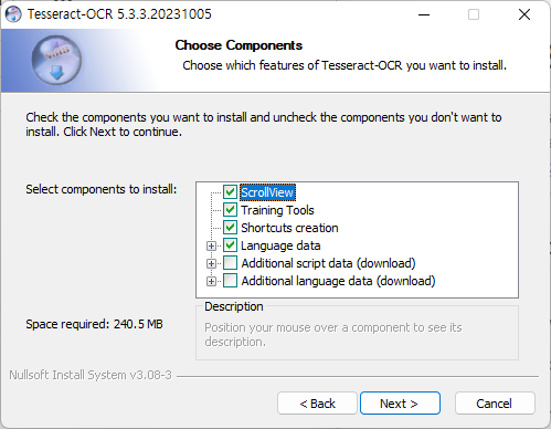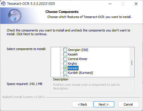 2. 설치 시 Addtional language data(download)에서 Korean을 선택합니다.