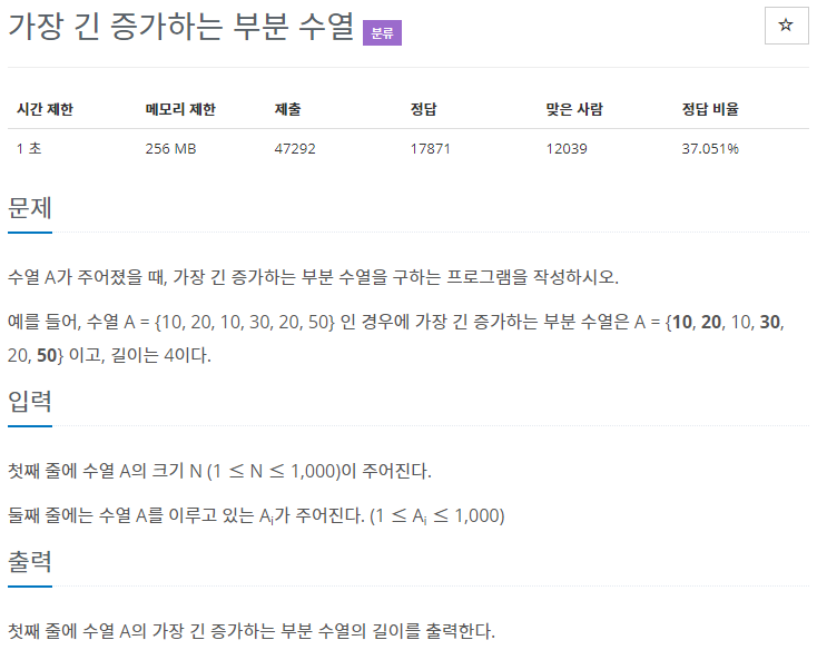 # 백준 11053 가장 긴 증가하는 부분 수열