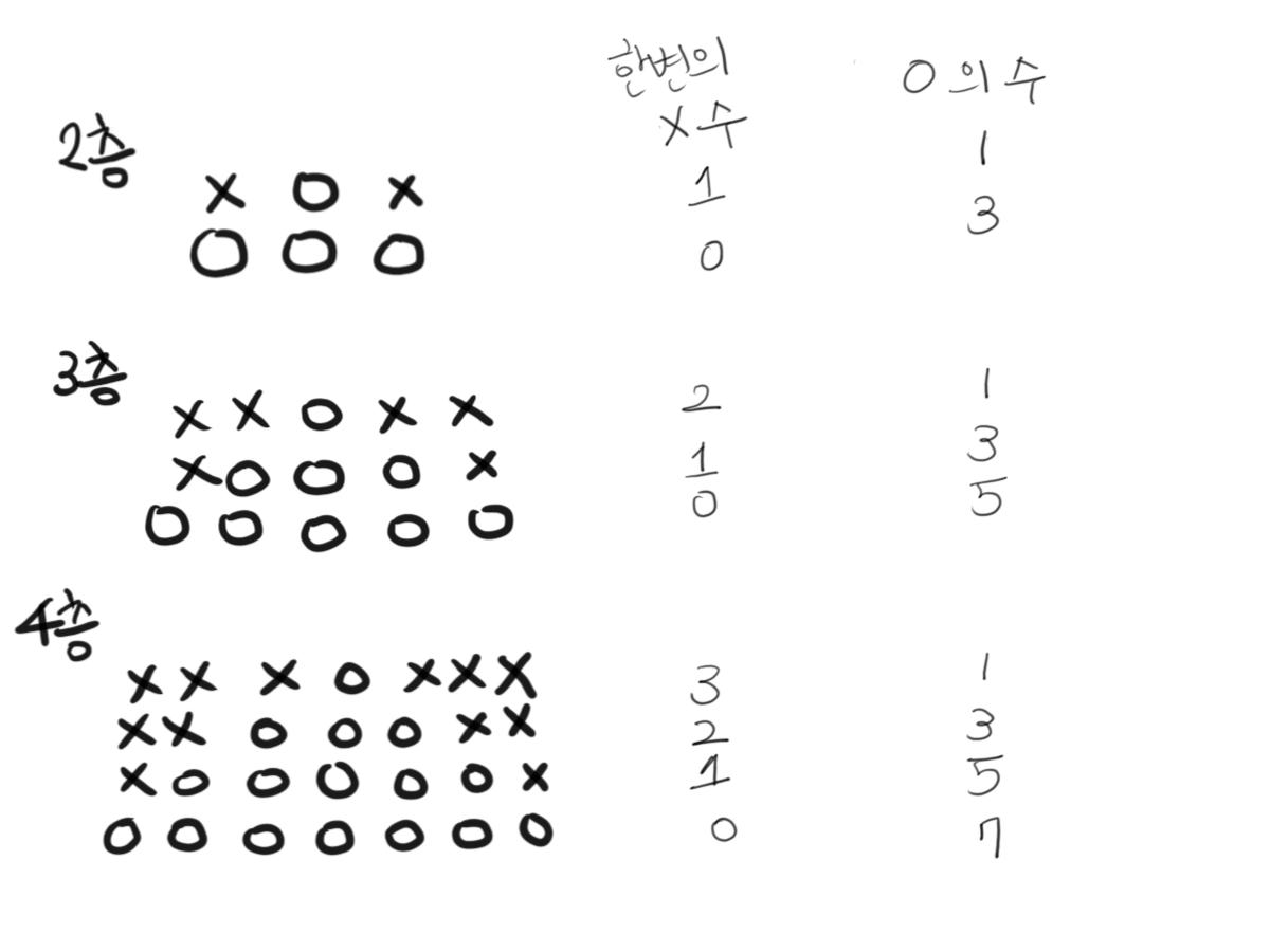 스페이스와 *이 눈으로 보기에 적합하지 않아서 스페이스를 X, *를 O로 바꾸어서 풀어보았다.