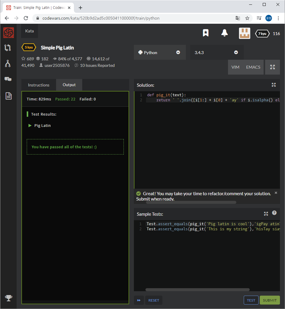 알파벳이 아닌 '!', '?', ',', '.' 등을 고려해야 했기에 isalpha()를 사용하여 나누어서 answer에 저장하도록 만들었습니다.