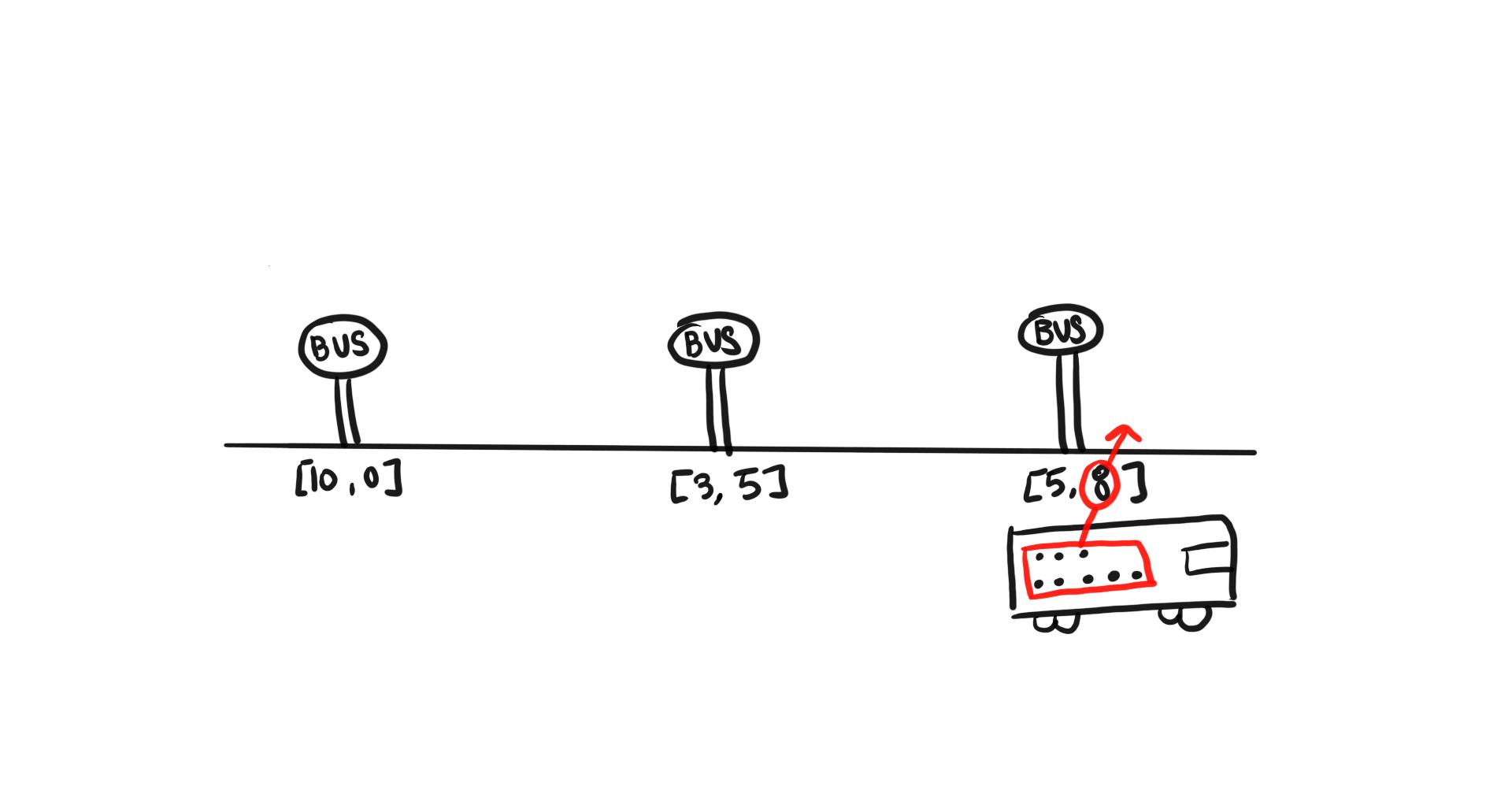 예를 들어 [[10, 0], [3, 5], [5, 8]]일 경우 버스는 총 3개의 버스 정류장에 섰습니다.